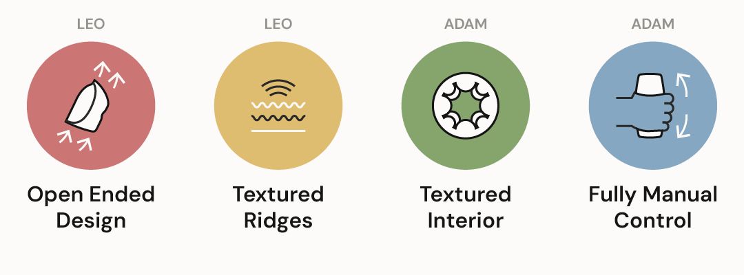 Adam is great for a safe and familiar introduction to personal adventures, with plenty of room for manual exploration. And when you're ready to level up, Leo is your thing! It's 9 different speed patterns and ribbed interior are always ready to spice up your me time.
